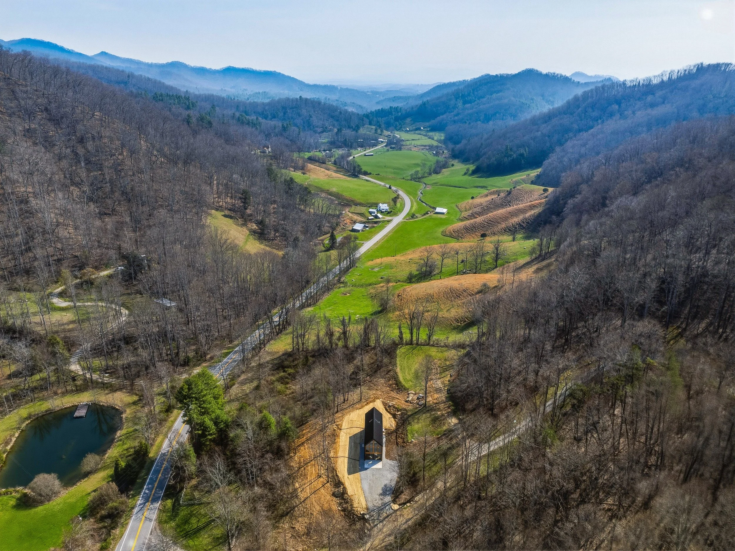 Sleek modern design, tasteful finishes, and a picture-perfect setting make this new construction home a must see property! Floor-to-ceiling windows frame a stunning view of the valley from the main level primary suite. Well appointed kitchen anchored by a marble waterfall island- featuring tiled backsplash, and stainless steel appliances. Flexible loft space on upper level overlooks living space and is met by wooded hillside views. Upper level bedroom features additional views of the valley. Elegantly styled bathrooms with tiled enclosures. Bonus space in cubby above loft perfect for additional space or storage. Enjoy the peace and privacy in the rural backdrop of Leicester. Whisper Mountain is a private gated mountain community with 50 homesites spread over 450 acres. Featuring a clubhouse, walking trails, and protected green spaces. Fiber internet is available in the community. No restrictions on short term rentals. Community entrance located on Highway 63- future expansion and development along this corridor will continue to bring amenities closer to the rural communities. 35 minutes to downtown Asheville.